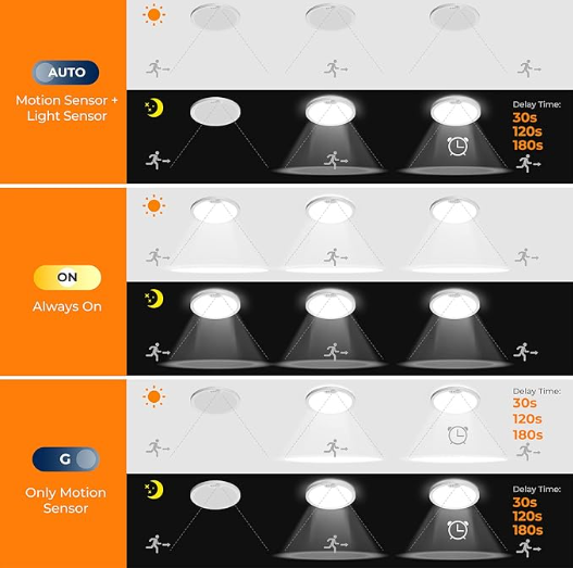 8″ LED Disk Light With PIR Motion Sensor 3 CCT Selectable (3000K/4000K/5000K) -120V/100-277V